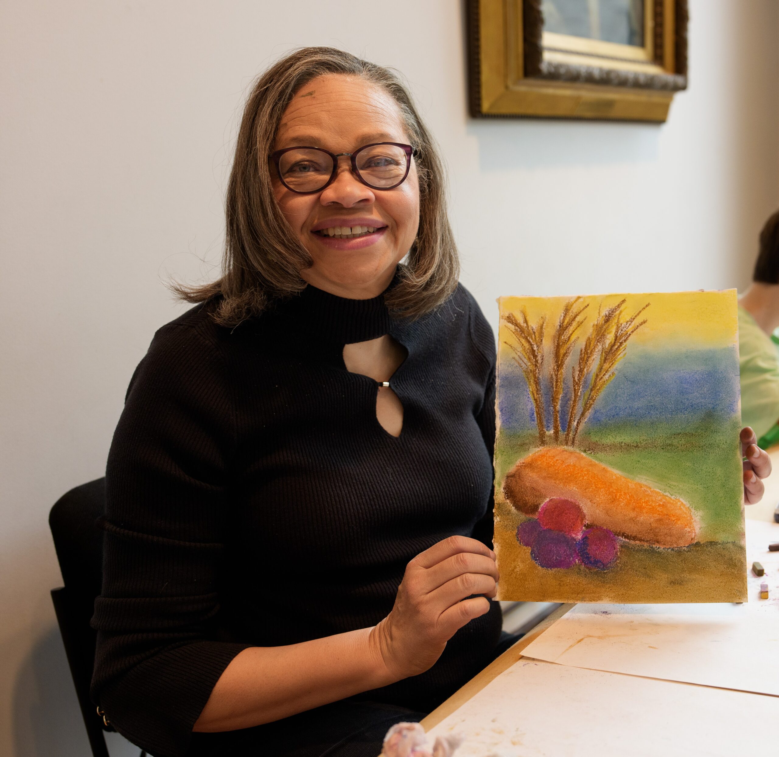 Betty Onwura at the Family Art Workshop, April 12, 2025. Photo by Janet Best.