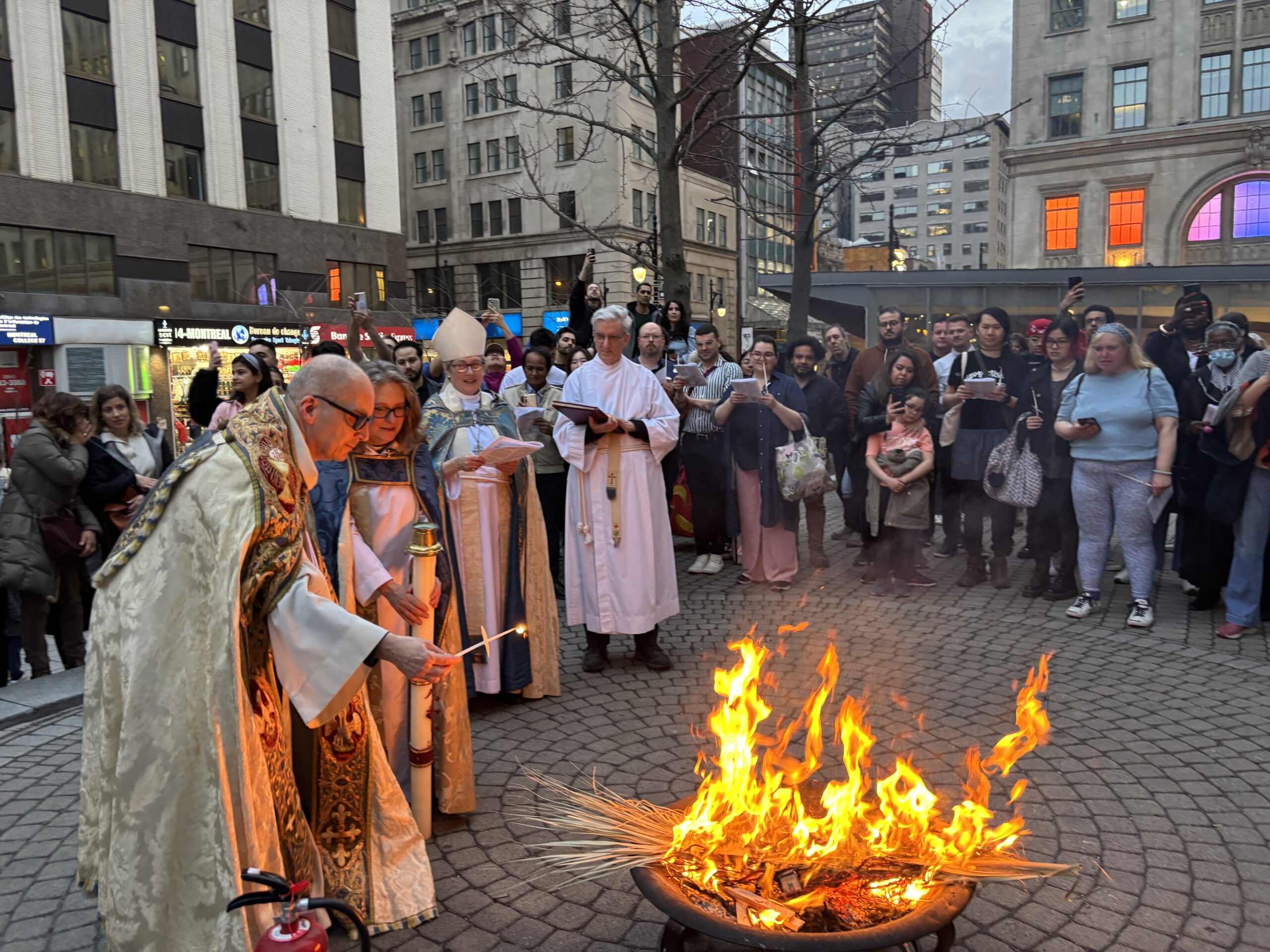 Lighting the Paschal candle at the Great Easter Vigil, April 19, 2025. Photo by Alex Griffin.