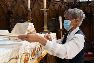 Evelyn Hadley prepares the altar.